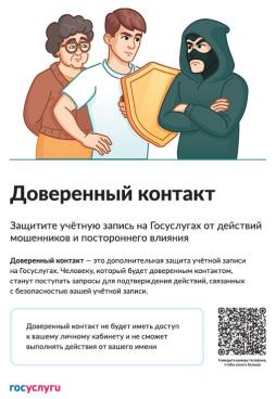 Доверенный контакт — это дополнительная защита учётной записи на Госуслугах. Человеку, который будет доверенным контактом, станут поступать запросы для подтверждения действий, связанных с безопасностью вашей учётной записи.